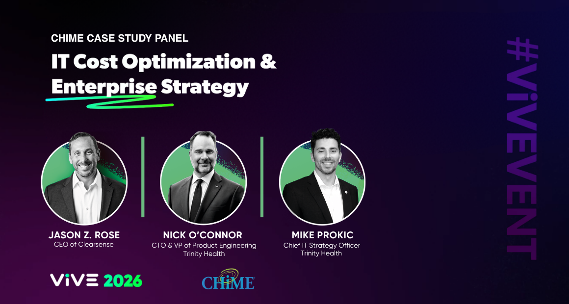 It is not usually the kind of topic that grabs headlines. Too often, it falls to the end of the priority list and is treated as “side of desk” work. But at ViVE, it moved out of the margins and onto the main stage, where Prokic joined Trinity Health CTO Nick O’Connor and Clearsense CEO Jason Rose for a session titled “IT Cost Optimization & Enterprise Strategy.”